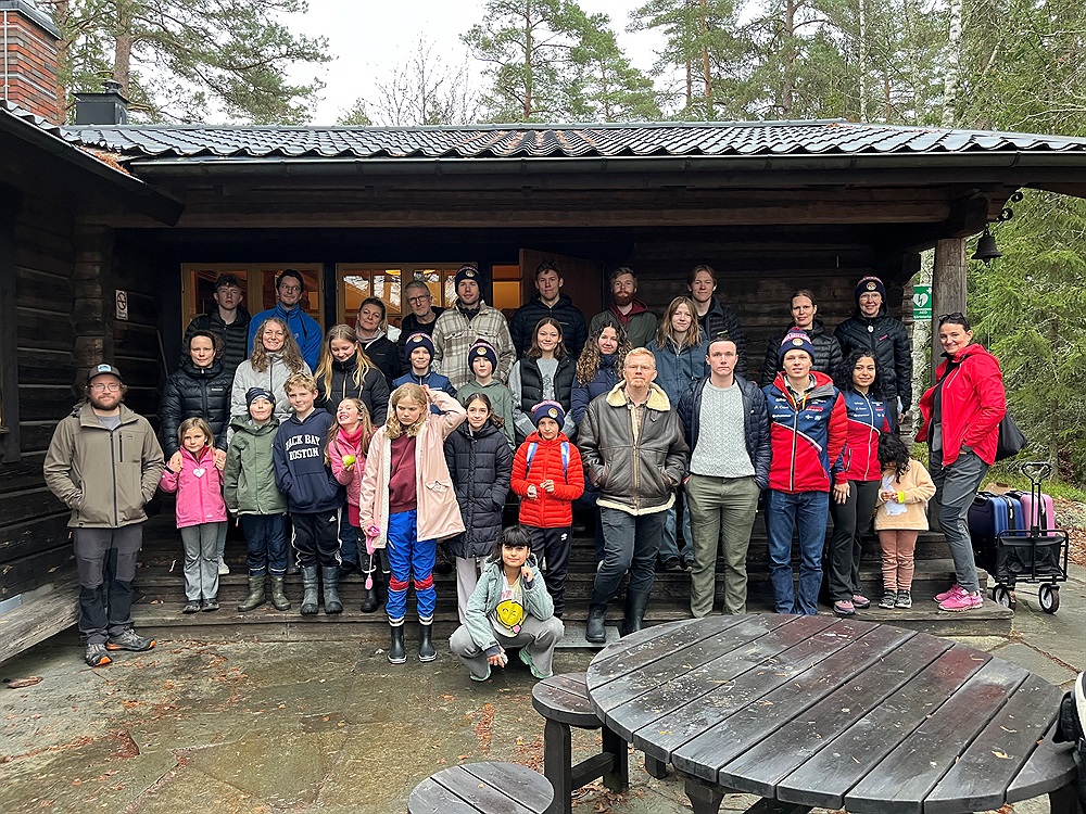 Hela gänget samlat framför stugan